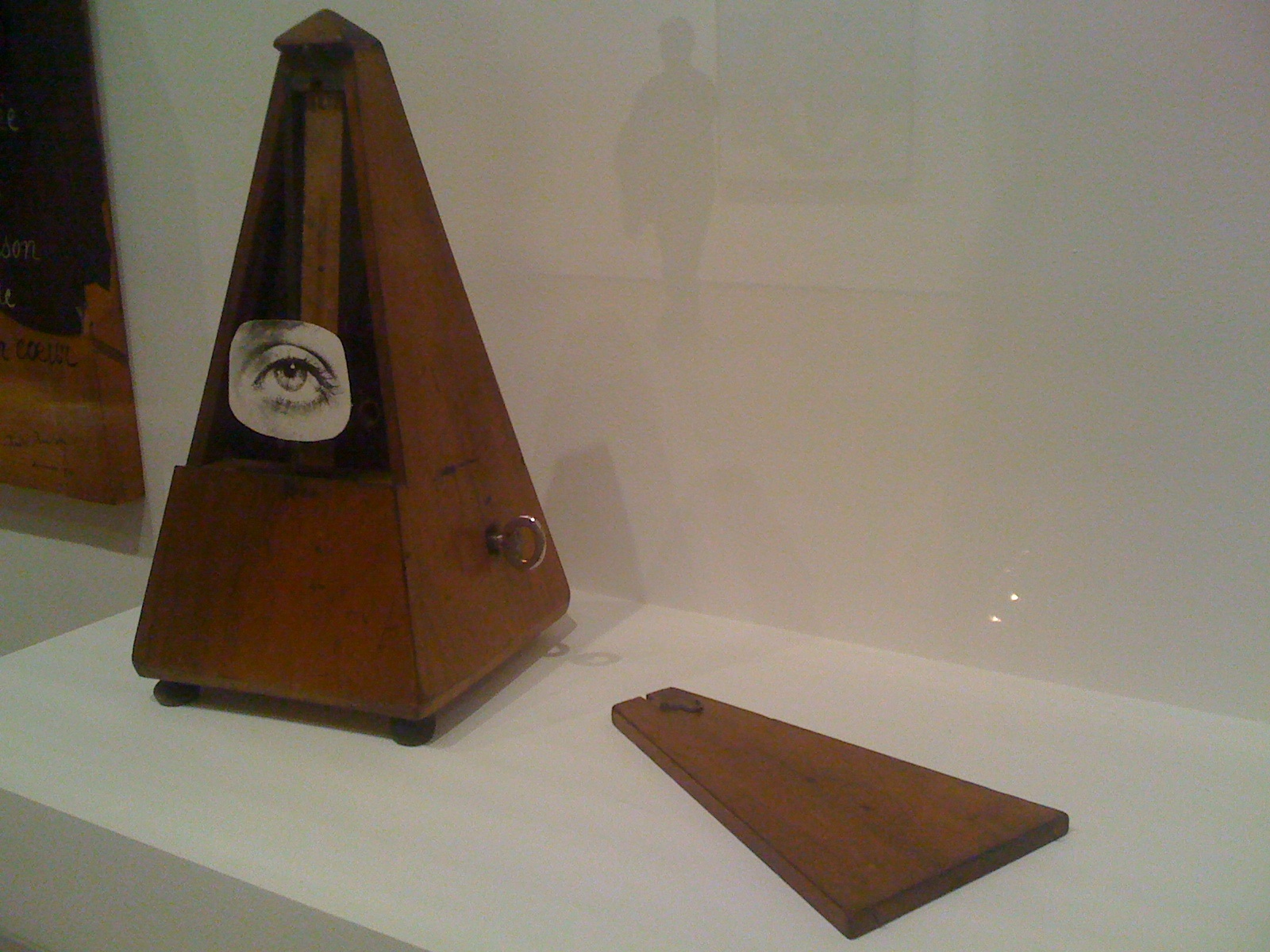Para rematar, me tropecé de nuevo con el Indestructible Object de Man Ray al que me referí en mis “Okupas en el Reina Sofía”, pero esta vez en su versión reducida. Ahí estaba el metrónomo, que no levantaba un palmo del estante, chiquitito y acobardado, encerrado en una vitrina; al verlo tan desprotegido e indefenso me dio por pensar si sería él quien había encogido, o yo la que me habría agrandado desde nuestro encuentro anterior. Me temo que hay un poco de cada cosa.