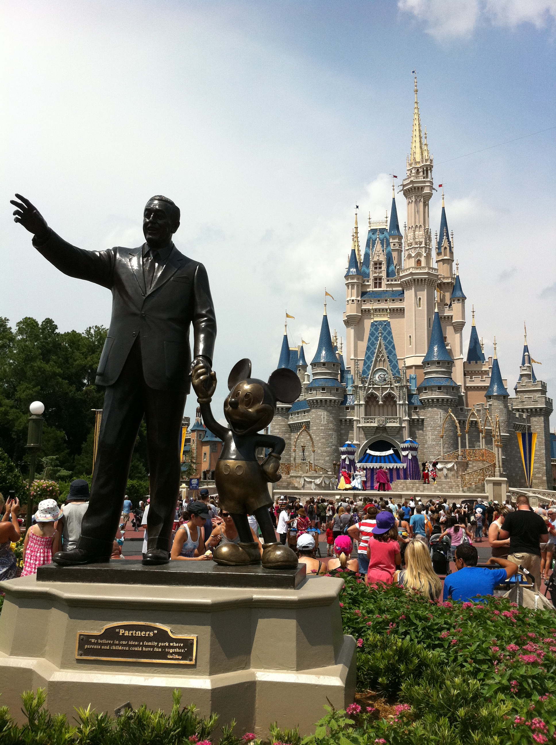 Los niños disfrutan en WDW, pero quienes lo aprecian son los adultos. Resulta estremecedor tener tal cantidad de medios intelectuales y físicos al servicio del entretenimiento. Si la palabra no estuviera tan denostada, me atrevería a decir que Walt Disney fue un visionario del espectáculo; me conformaré con escribir que admiro el espíritu aventurero, imaginativo y algo chiflado de un hombre que quiso construir un lugar en el que niños y adultos pudieran llegar a creer que A dream is a wish your heart makes y que, sólo con un poco de polvo de hadas y buenos pensamientos, youcanflyyoucanflyyoucanfly. Disney no logró ver inaugurado este WDW, pero sí percibió que su Disneyland californiano ya se estaba quedando pequeño y apostó por construir este disparate entre Bay Lake y Lake Buena Vista, donde los terrenos eran baratos por aquel entonces.