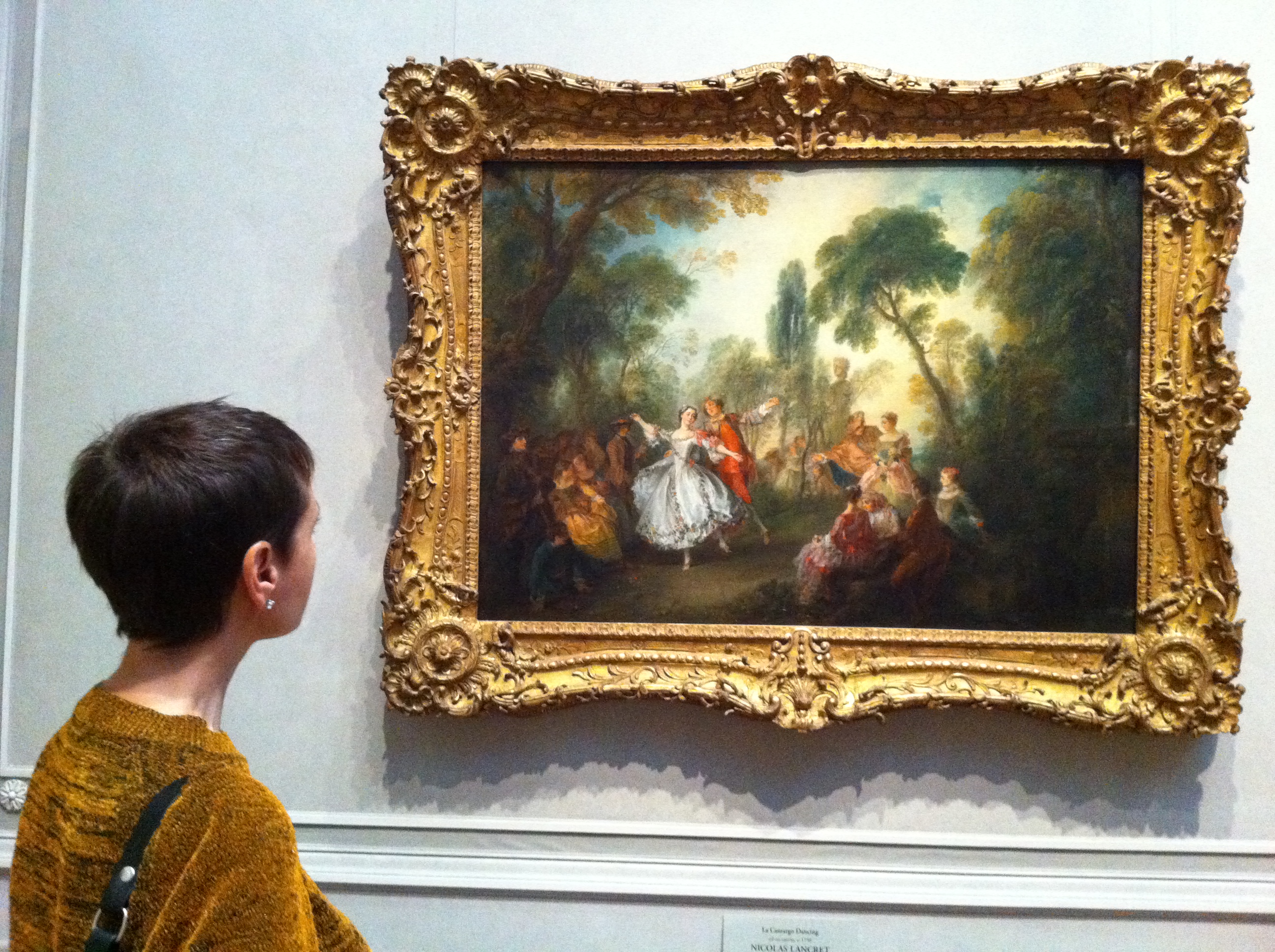 Finally, I walked down to meet my friend. So many years looking at each other through the internet and we had never seen face to face. At the West Main Floor, Gallery 54, Maria Camargo, painted by Nicolas Lancret, was waiting for me. How many hours and days I’ve been searching her dress, her shoes, her careless and light arabesque… reproduced in the high definition pdf that the museum sent me, and looking at my computer’s screen. And La Camargo was just there, waiting for us, under the watchful eye of a museum curator who started to begg me not to hug her so hard, because we had to keep the security distance. Nonsense.