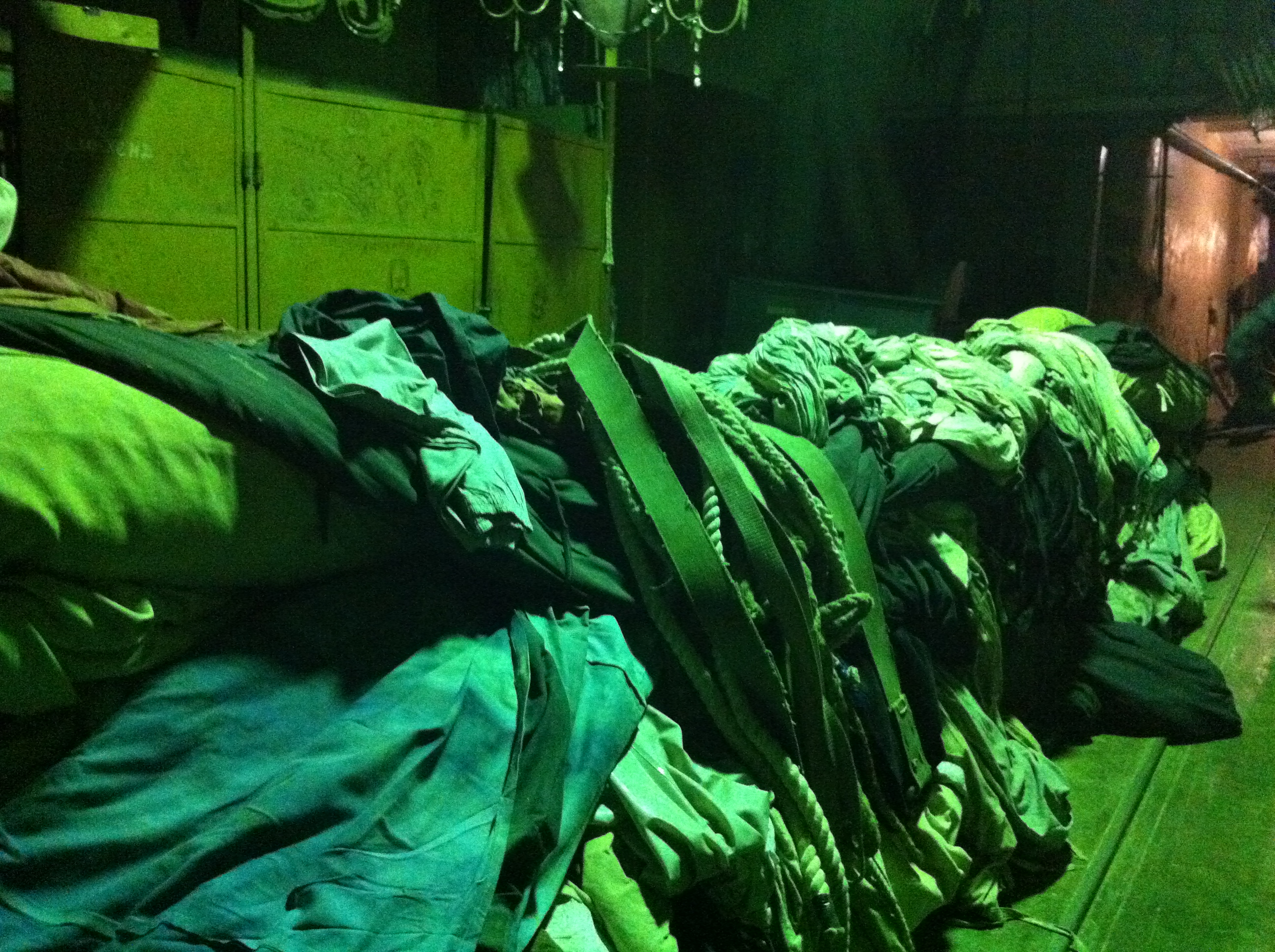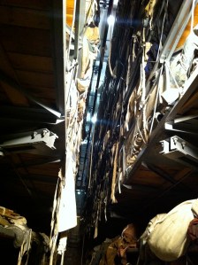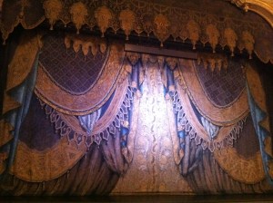 Leaving aside the tons of dust accumulated for the last two centuries, the stage machinery keeps beating. “Everything works perfectly,” said my sherpa, but only by human hands. It’s wonderful to see that huge room where very old curtains are stored, and walk through the ancient tunnel/gallery where trucks crawl over rails, bringing the curtains to the chácena; I also enjoyed a lot strolling under the stage and finding the traps that Carabosses and Auroras have been using to disappear from the stage for the last two centuries.