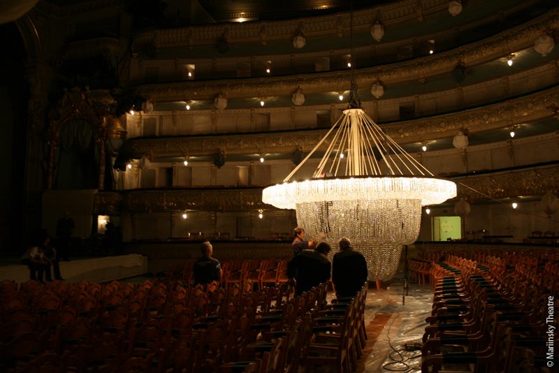Also theaters, apparently, need to be prepared in advance. I’ve just found out that the Mariinsky Theatre in St. Petersburg spent several weeks to get ready before the new season, so the audience wouldn’t come into the room, getting into our dirty corridors. That magical, gold and emerald-green microcosm does not deserve a third “stiff” day of work, people in charge might think, and there’re so many curtains to be ironed, and so many little lights to be replaced… we can’t lose any time. I love these images, they’re so indiscreet.